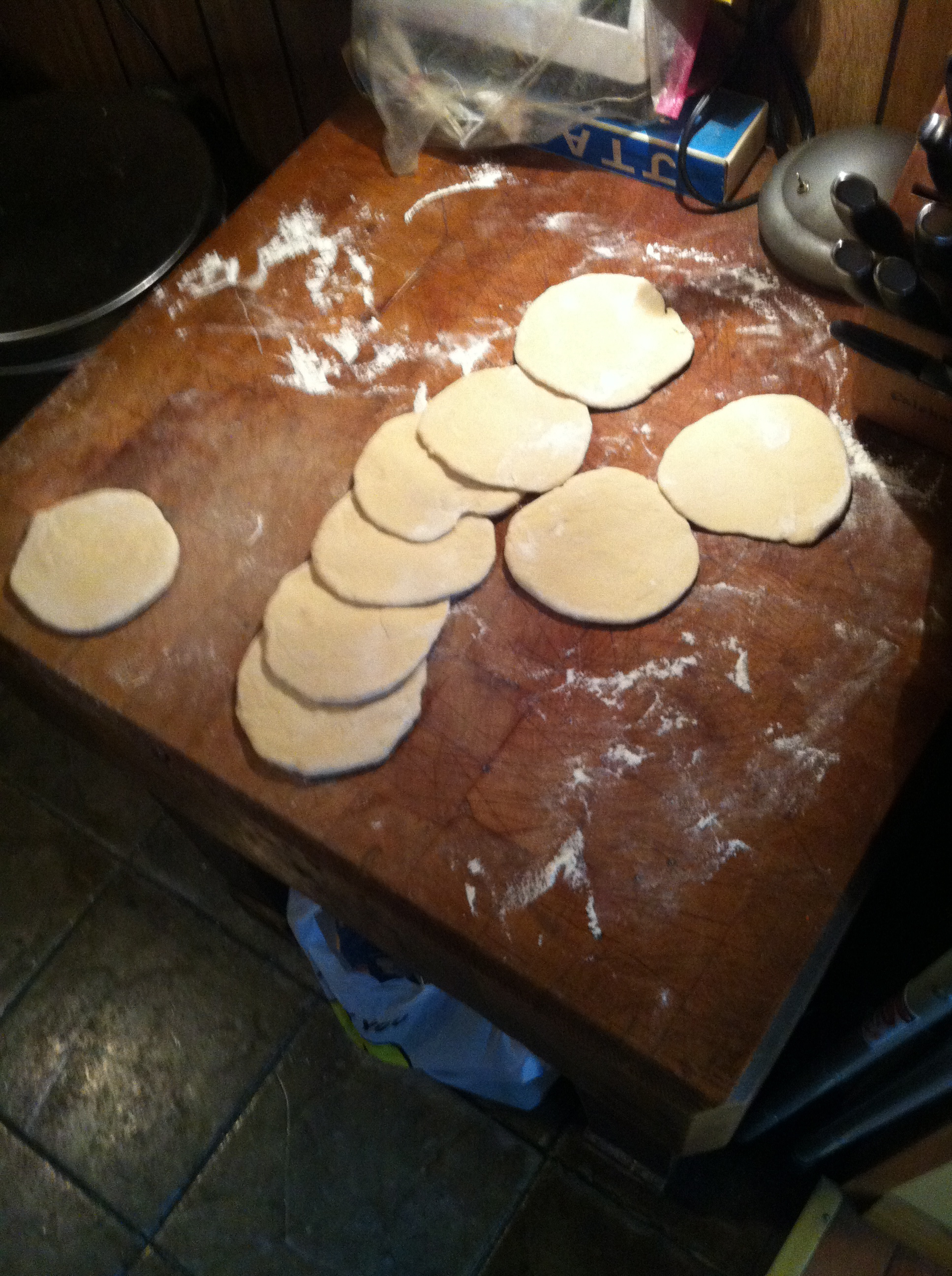 5. Roll out each one on a floured surface to form disks of about 1/2 cm thickness.