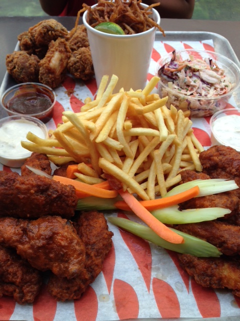 Chicken Shop wings, Buffalo wings, Tobacco 0nions, Slaw, fries
